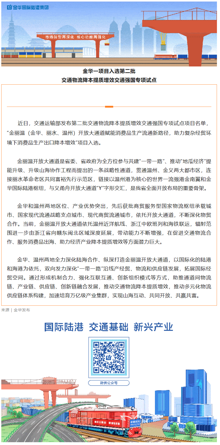 金華一項目入選第二批交通物流降本提質(zhì)增效交通強(qiáng)國專項試點